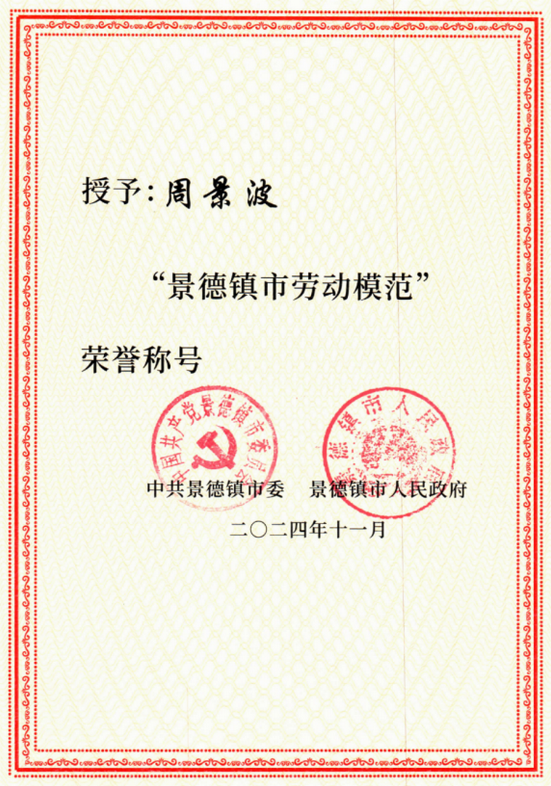 11月28日上午,市委、市政府在紫晶會堂隆重舉行2024年景德鎮(zhèn)市勞動模范和先進工作者表彰大會,表彰一批在平凡工作崗位上作出不平凡業(yè)績,積極進取、樂于奉獻、貢獻突出的先進模范典型。此次大會共101人獲得表彰,來自集團下屬子公司周景波同志被授予“2024年景德鎮(zhèn)市勞動模范”光榮稱號。這一榮譽的獲得,是對周景波同志長期以來辛勤工作、無私奉獻的肯定,也是對他所代表的國控集團和景德鎮(zhèn)市國信置業(yè)有限公司在城市建設(shè)領(lǐng)域所做出卓越貢獻的認(rèn)可。