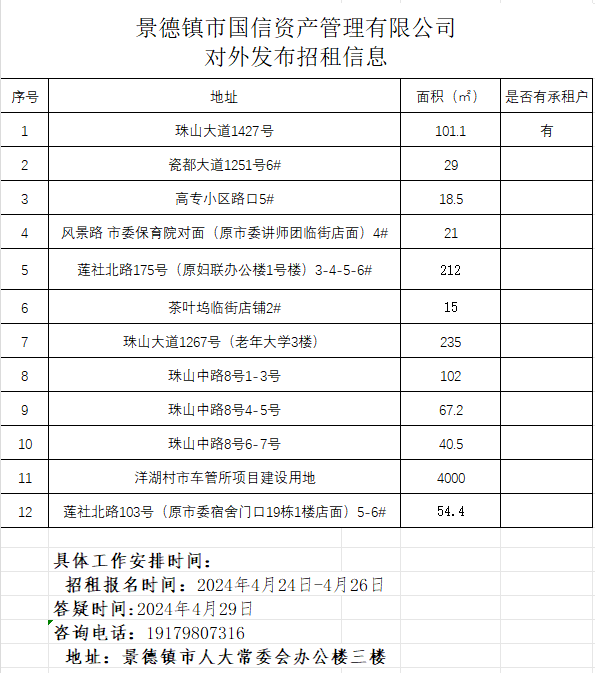 景德鎮(zhèn)市國(guó)信資產(chǎn)管理有限公司對(duì)外發(fā)布招租信息