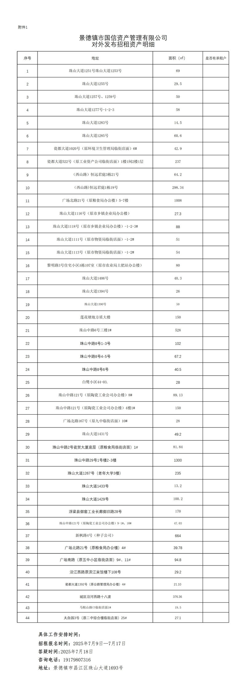 1、招租報名時間:2025年7月9日—7月17日 ,答疑時間:2025年7月18日 (具體詳細信息可電話聯(lián)系咨詢)